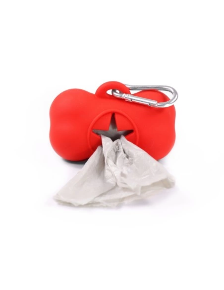 Silicone dispenser for bone-shaped hygienic bags with metal carabiner. Practical and functional, it has two holes: one for inserting the roll, and the smaller one for easy removal of the bags. One roll of 15 bags is included in the package;